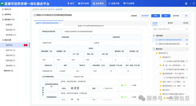 通过全面梳理宜春市自然资源局用地、用矿等2大核心业务的现状和难点,整合优化预审选址、用地报批、土地收储、土地供应、用地许可、工程许可、竣工验收、探矿权发证、采矿权发证、探矿权出让、采矿权出让等58项关键业务事项的业务流程。通过与工改系统、数字会商等系统的深度融合对接,创新“一窗受理、并联审查、线上会商、统一发件”模式,预期取得以下成效:
